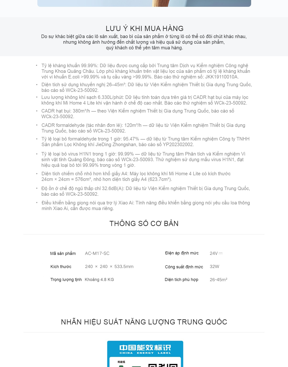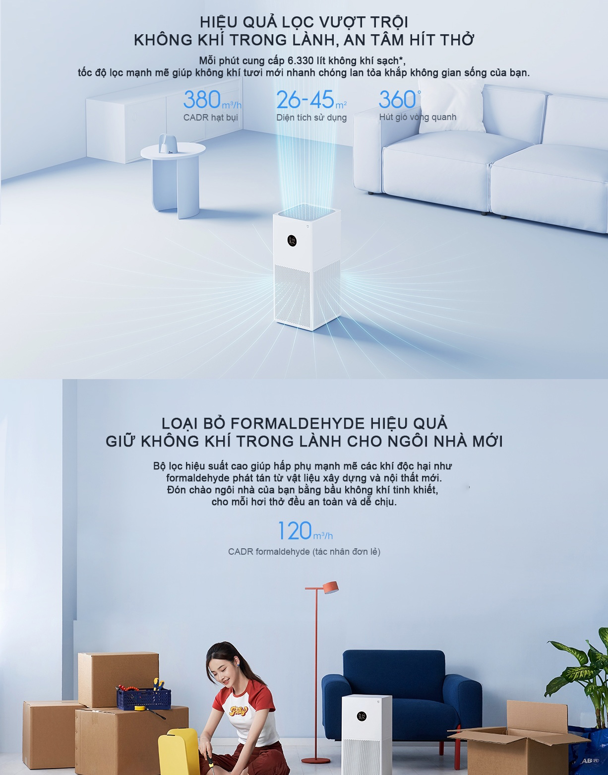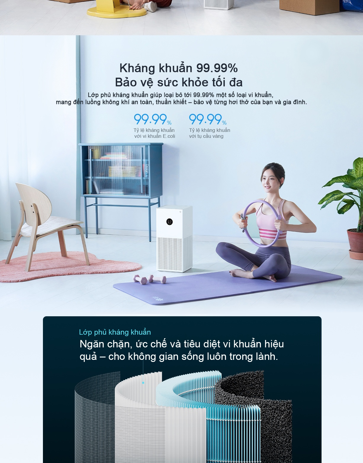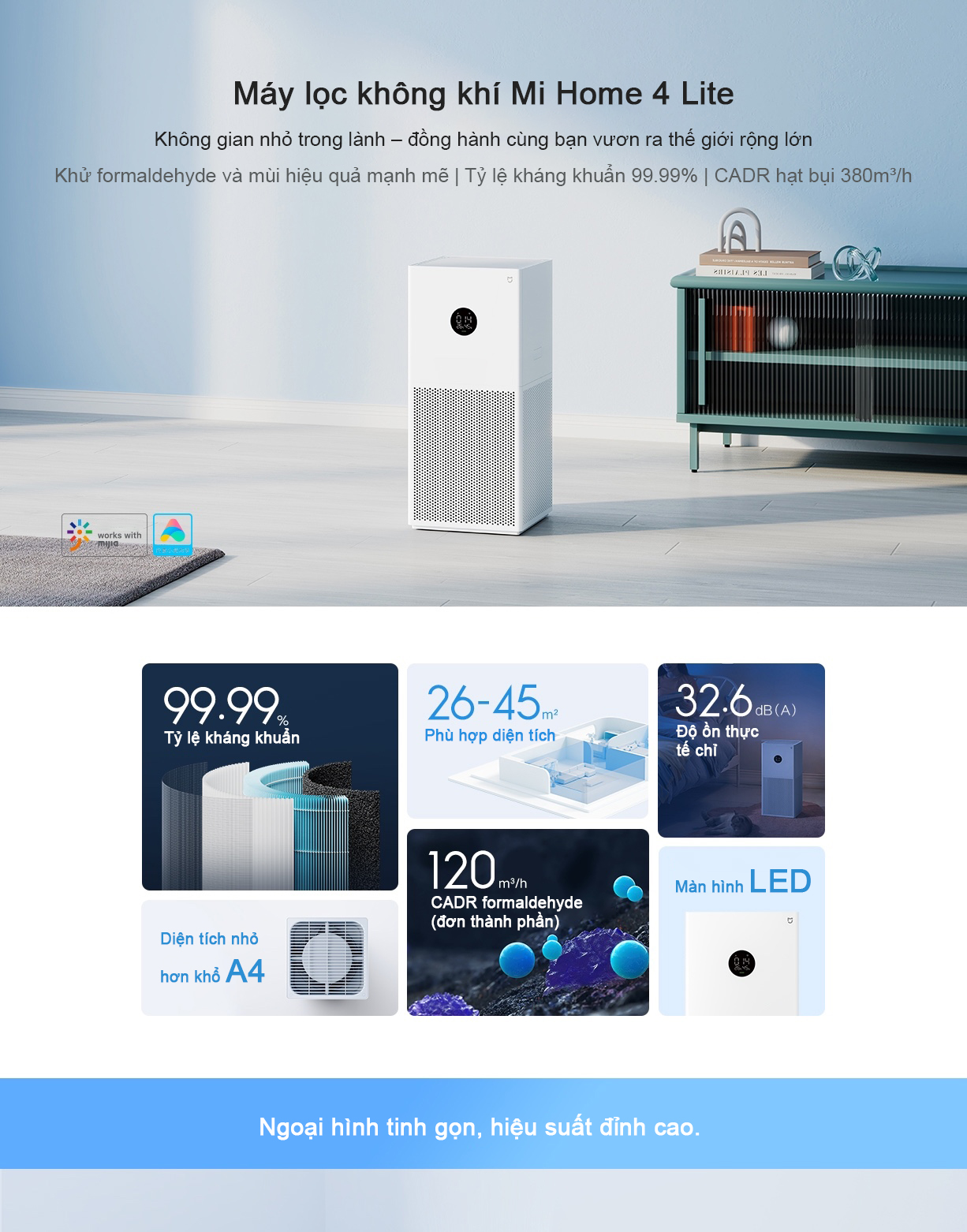 Diện tích chiếm dụng nhỏ hơn giấy A4 | Tỷ lệ kháng khuẩn 99,99% | Diện tích sử dụng phù hợp: 26–45 m²